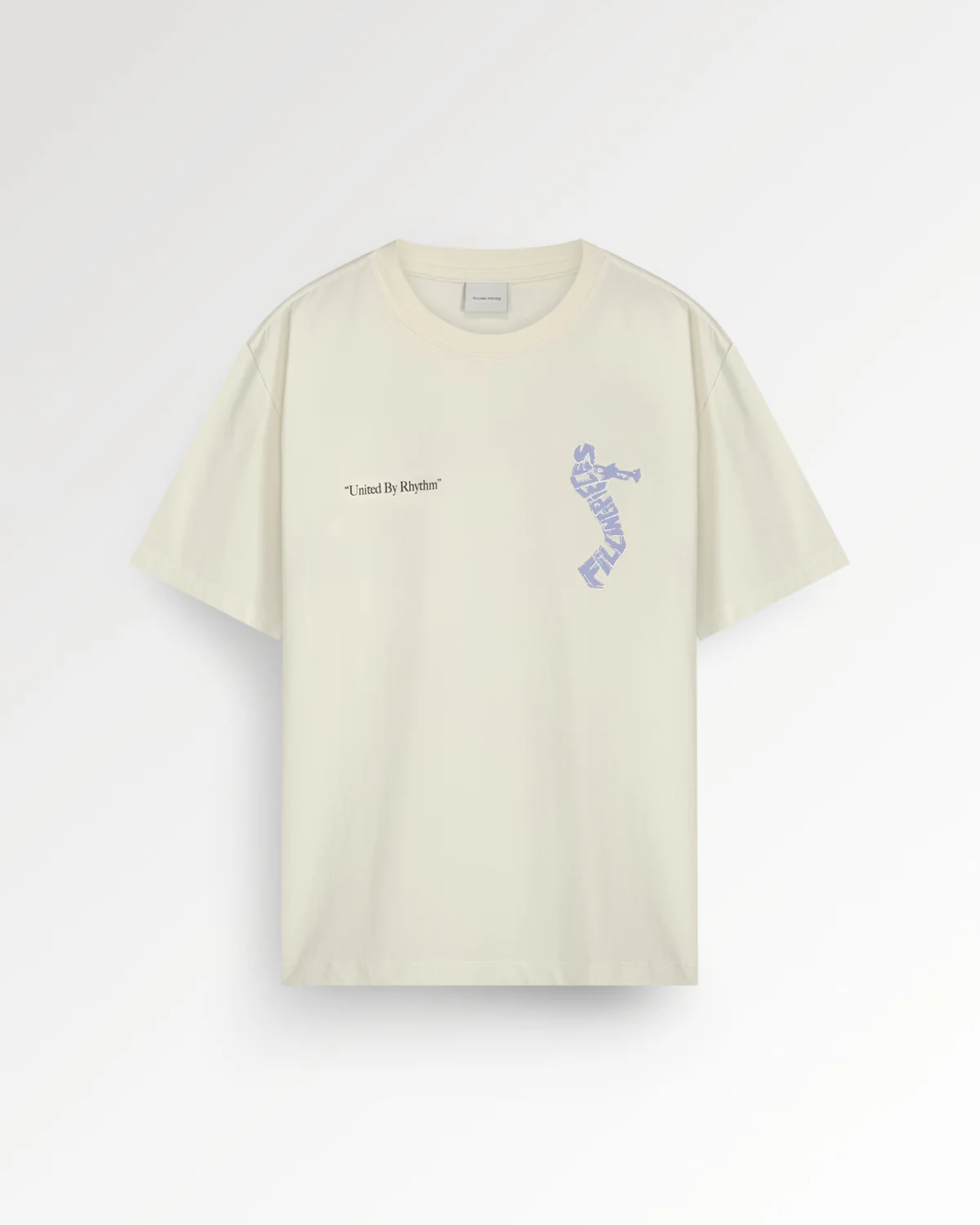 The T-shirt Trumpeteer Antique White is made from 100% organic cotton with a clean, structured feel. The graphic shows a trumpet player in motion, carrying the FP logo through expressive lines that echo soundwaves. A visual translation of rhythm, identity and this season’s theme.